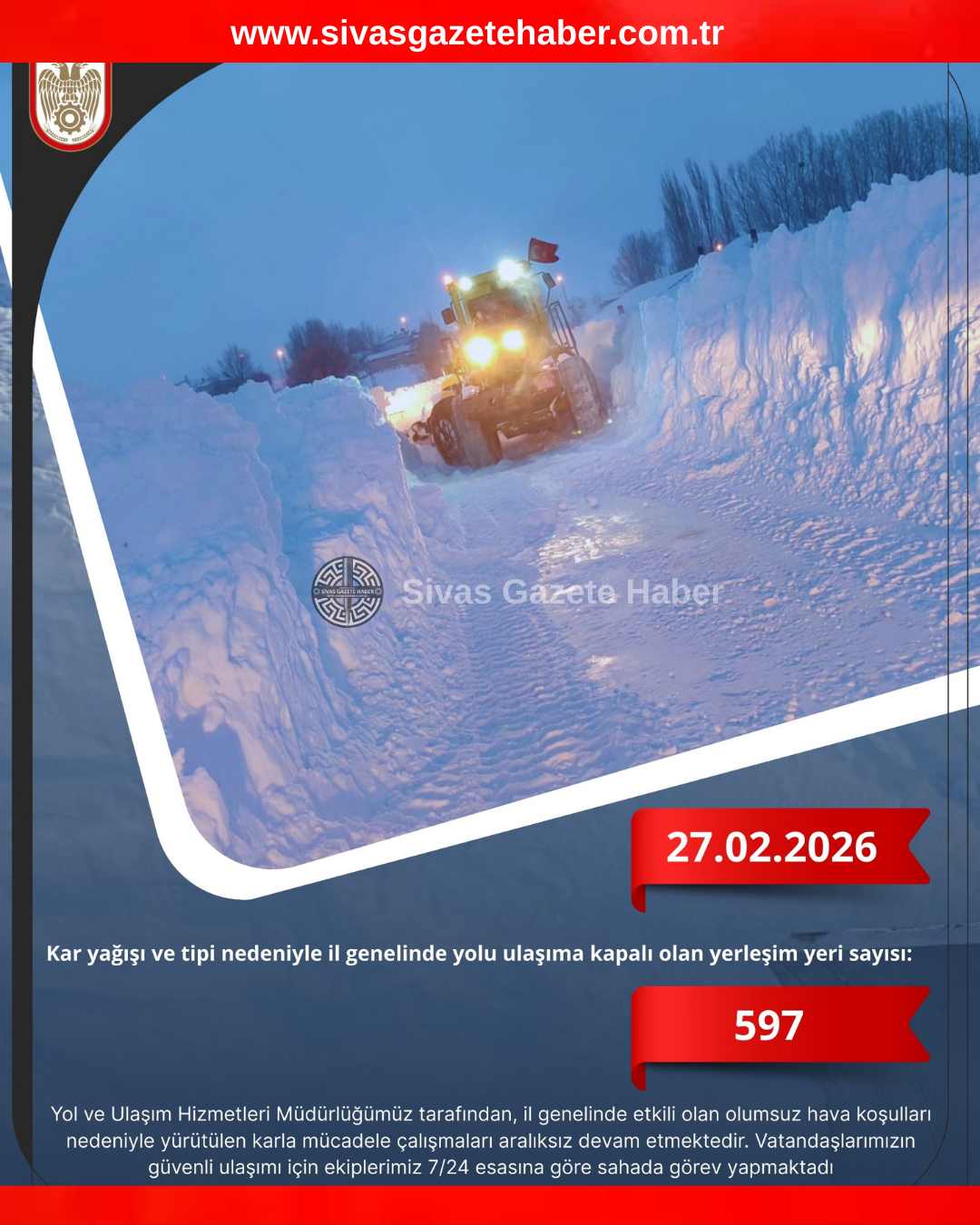 27.02.2026 tarihi Sivas’ta Karla Mücadele