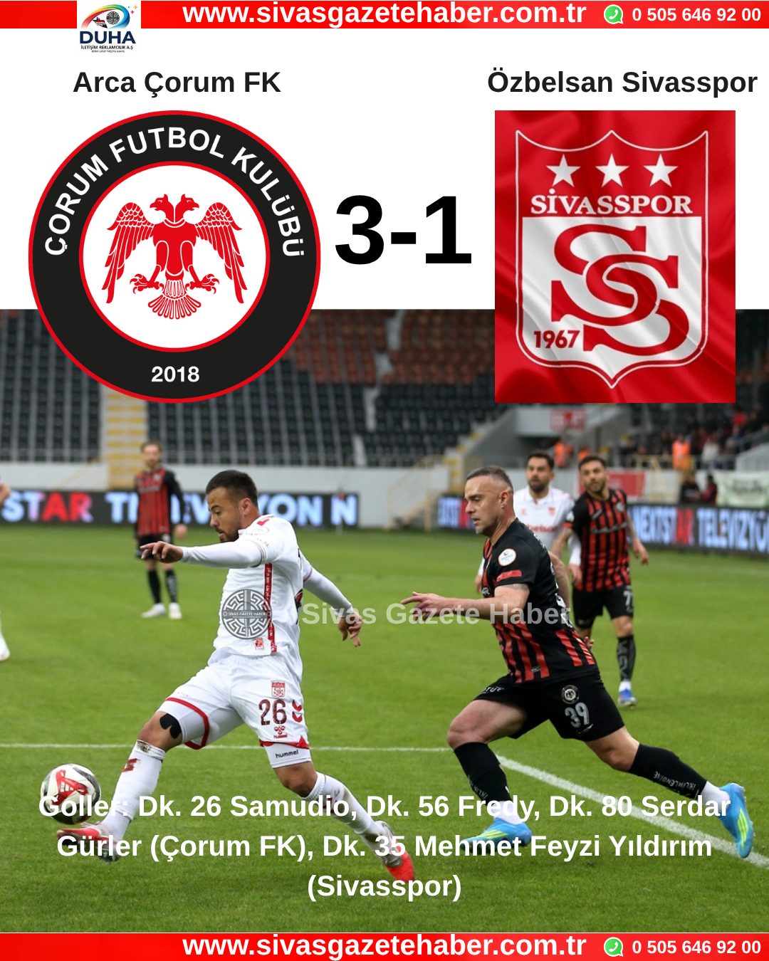 Goller: Dk. 26 Samudio, Dk. 56 Fredy, Dk. 80 Serdar Gürler (Çorum FK), Dk. 35 Mehmet Feyzi Yıldırım (Sivasspor)