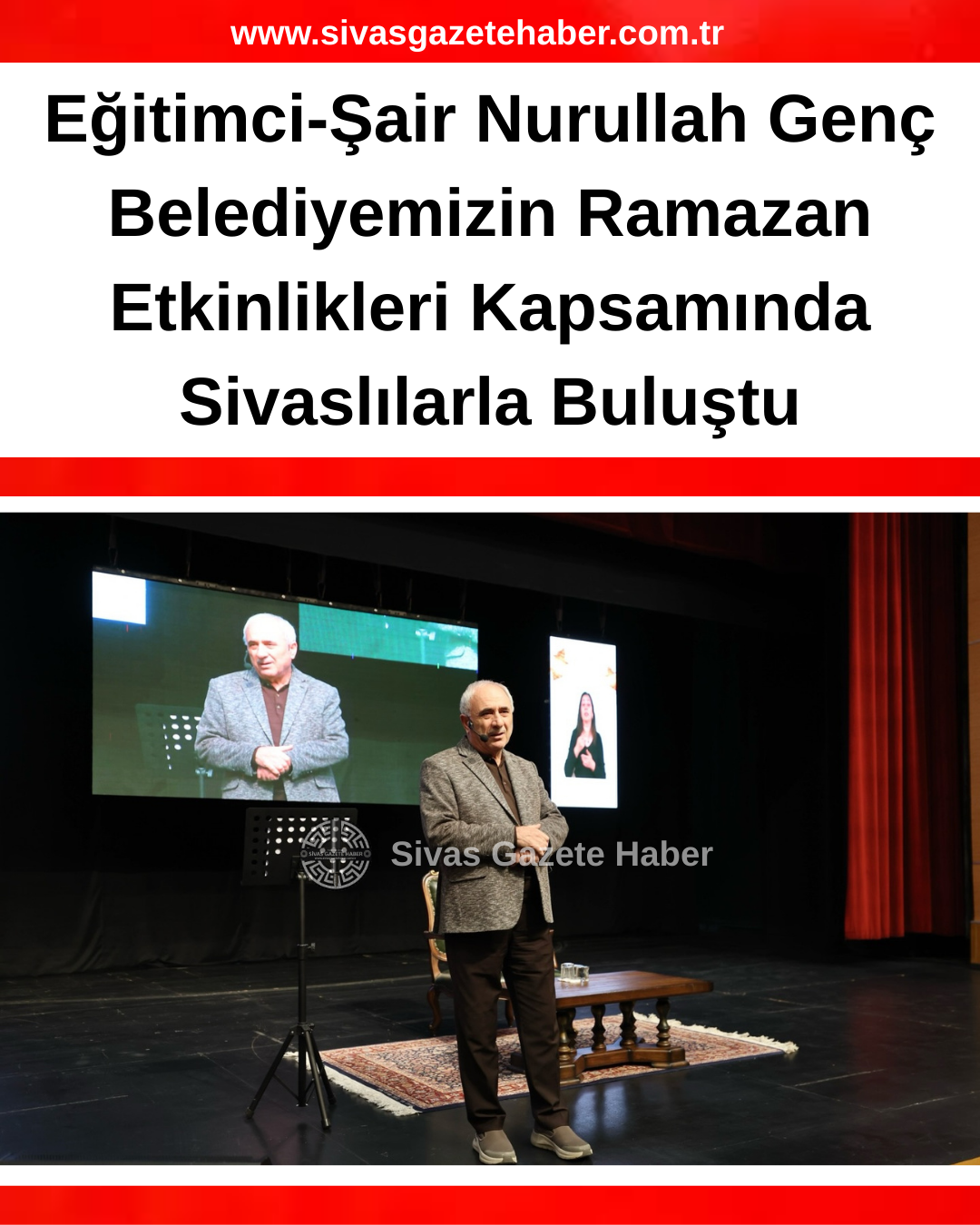 Sivas Belediyesi #Ramazan etkinlikleri kapsamında, şair ve yazar Nurullah Genç’in konuşmacı olarak katıldığı söyleşi programı gerçekleştirildi.