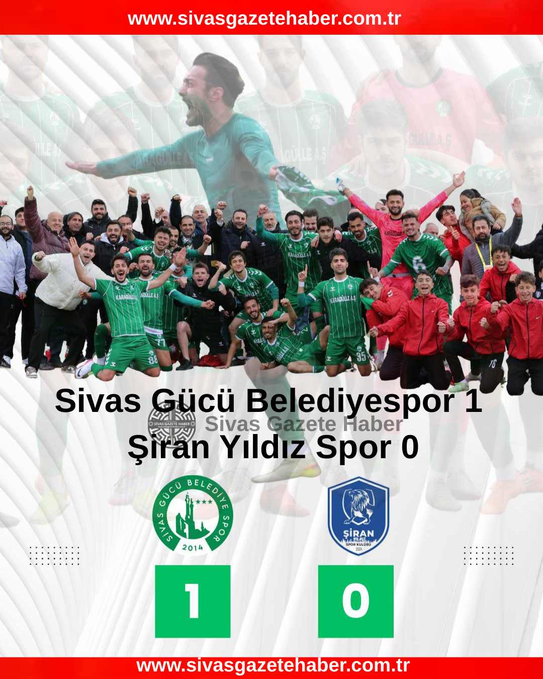 Bölgesel Amatör Lig’de Sivas Gücü Belediyespor, sahasında lider Şiran Yıldız Spor’u 1-0 mağlup ederek çok önemli bir galibiyete imza attı.