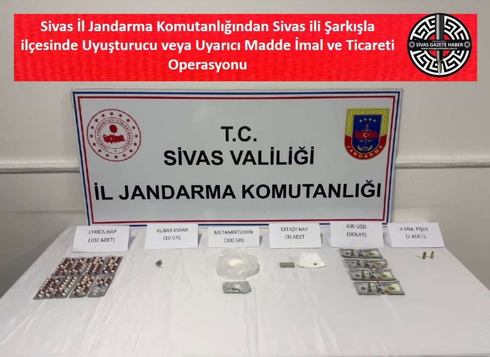 Sivas İl Jandarma Komutanlığından Sivas ili Şarkışla ilçesinde Uyuşturucu veya Uyarıcı Madde İmal ve Ticareti Operasyonu