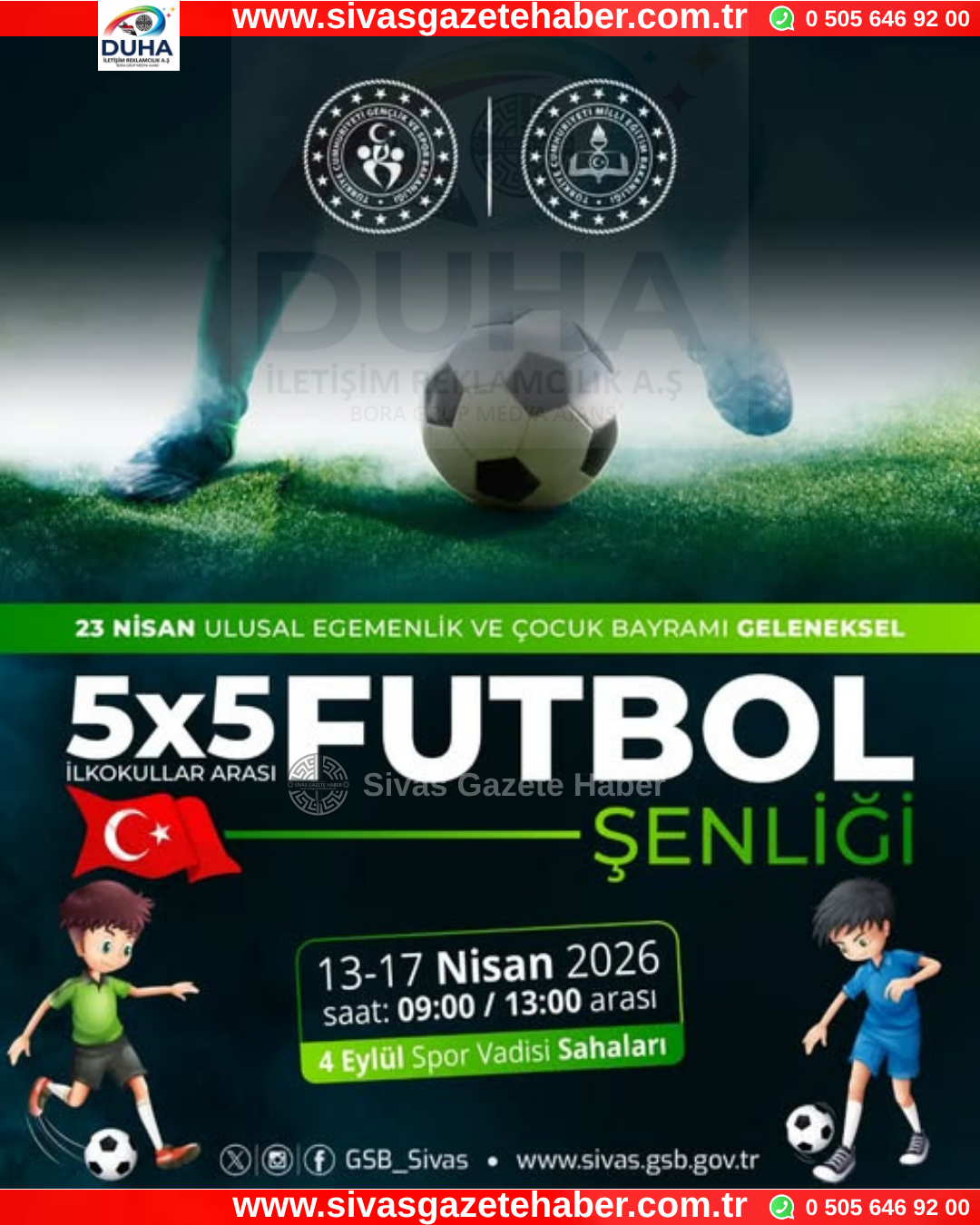 13-17 nisan saat 09.000-13.00 arası 4 eylül spor vadisinde İlkokullar arası futbol şenliğinde buluşalım
